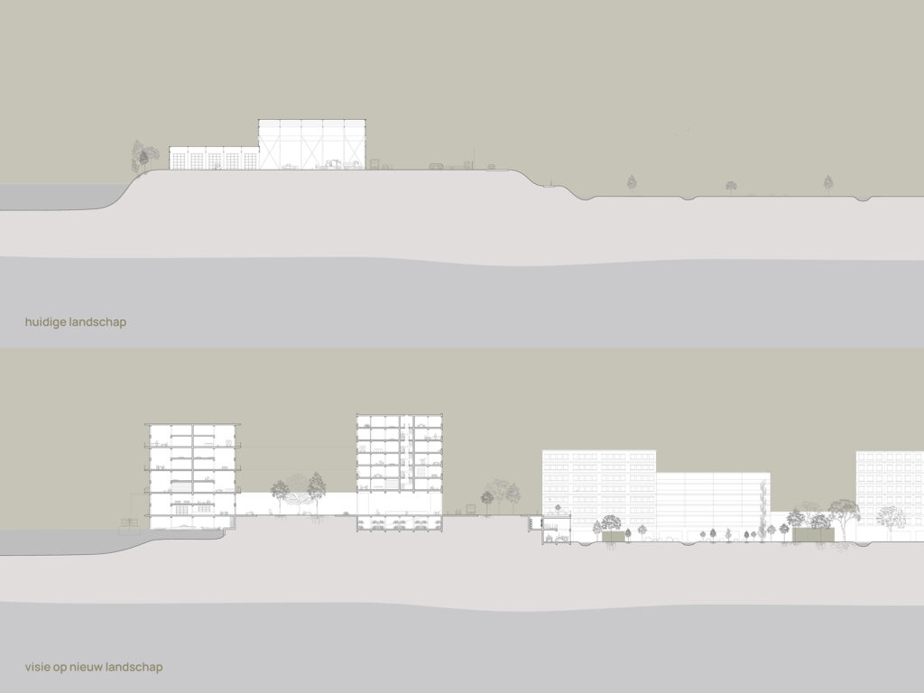 In de tussengelegen boezem (-3m NAP) worden landhoofden (of pieren) gebouwd op een niveau dat aansluit op de brede dijk. Hier op en -aan worden nieuwe woongebouwen gerealiseerd. In en onder de landhoofden is ruimte voor parkeren, logistiek en publieke functies. Deze grenzen aan de gronden van de huidige boezem. Waar ruimte is voor kleinschalige landbouw, voedselbossen en parken.