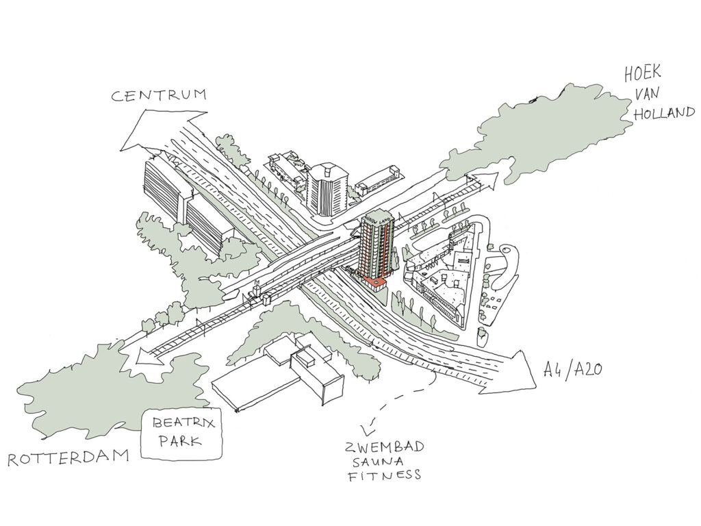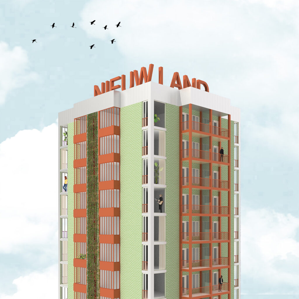De typologie van het gebouw is geschikt voor het bouwen op kleine kavels, te midden van leefbare plek. De plint van het gebouw biedt ruimte voor commerciële ruimte en een grote fietsenstalling. Hiermee wordt de omgeving verder geactiveerd.